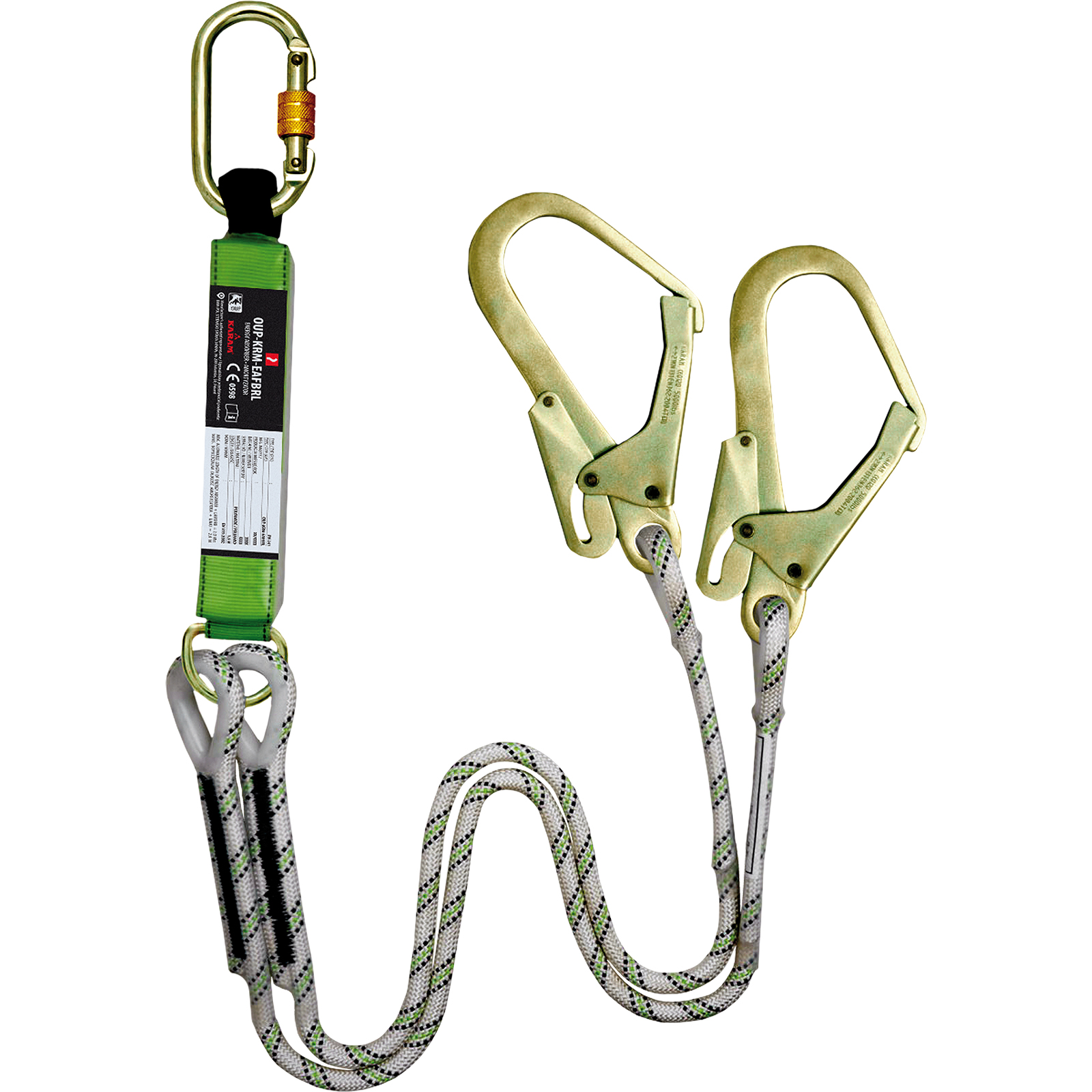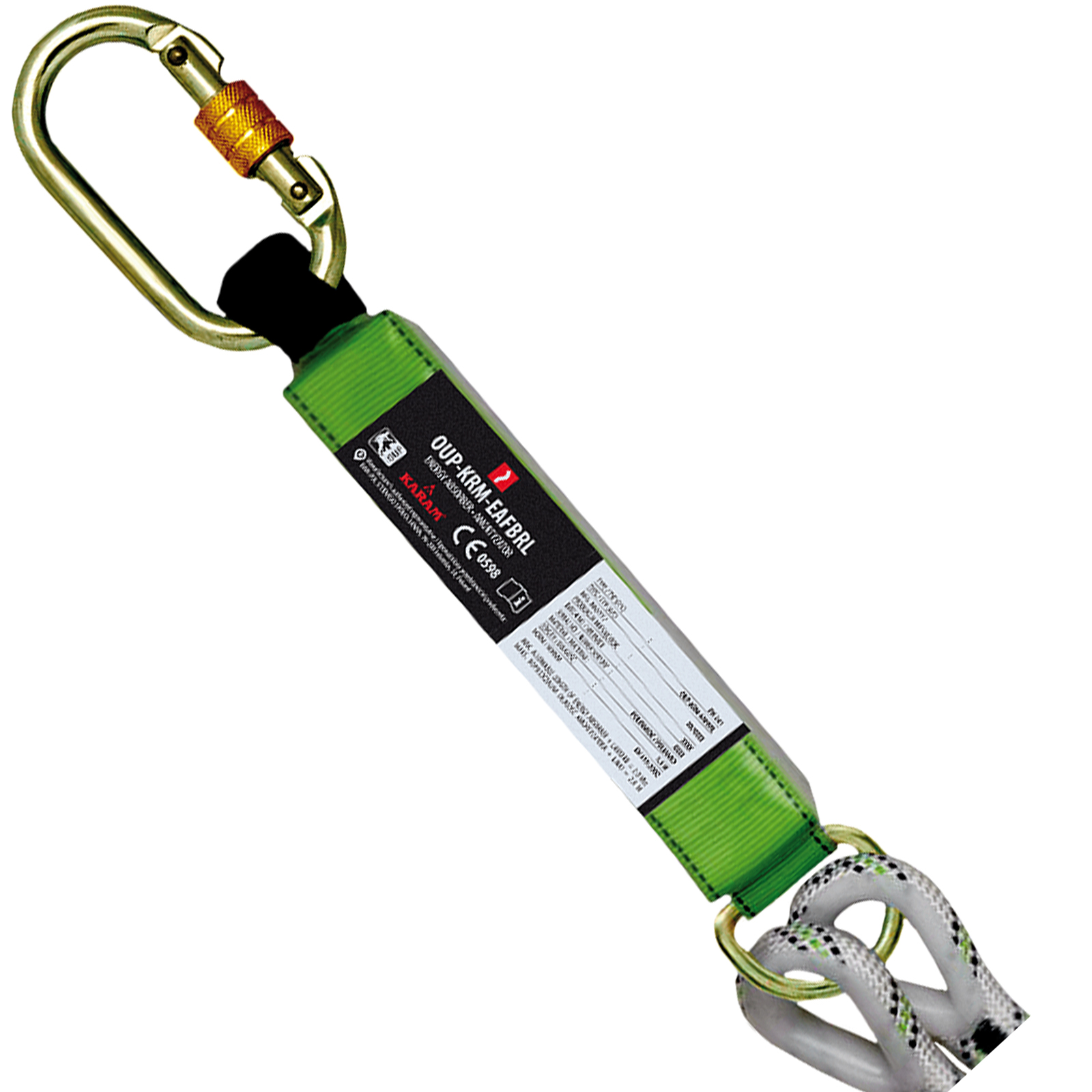 – Energieabsorbierender Falldämpfer mit Karabinerhaken auf einer Seite des Seils